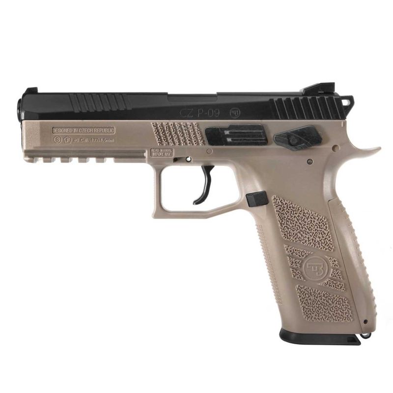 A ASG CZ P09 TAN e Preta vem em calibre 4,5 mm Diabolo e BB com número de série consecutivo e é uma réplica de alta qualidade da pistola que é popular entre o exército e a polícia desde a década de 1970. O modelo tem um cano de cinco polegadas como uma versão "full size".