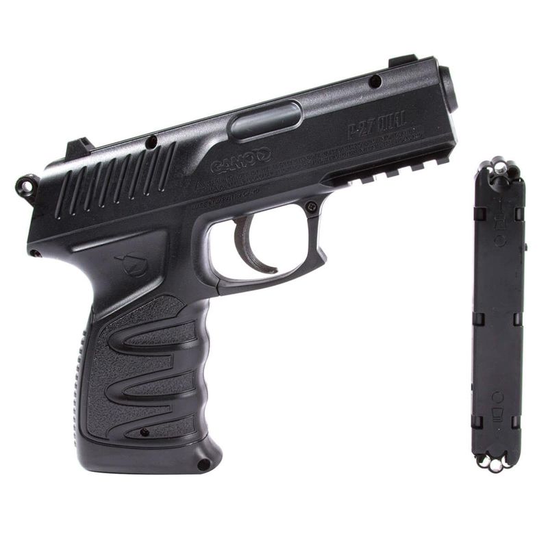 A Pistola Airgun Gamo P-27 co2 calibre 4,5mm que dispara chumbinho é o que você procura se quer combinar força, precisão e preço.