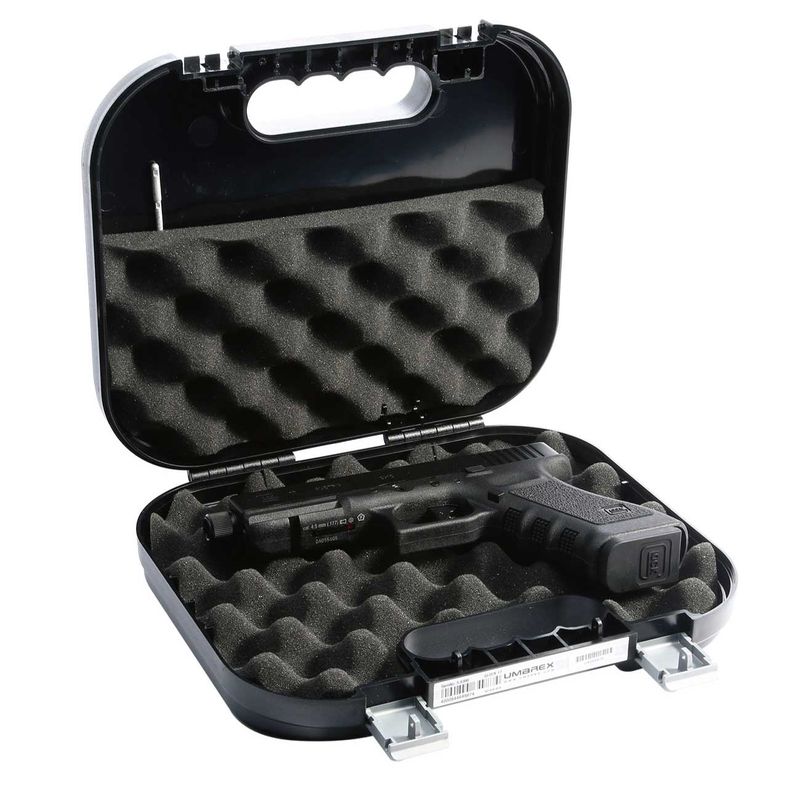 A Glock 17 Gen. 3 pistola de ar é entregue com 3 tambores extras em um estojo de pistola Glock acolchoado com espuma.
