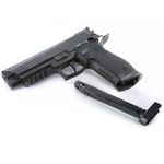A pistola P226 X-Five da Sig possui capacidade para 20 chumbinhos 4,5mm que vão num magazine estreito separado do CO2.