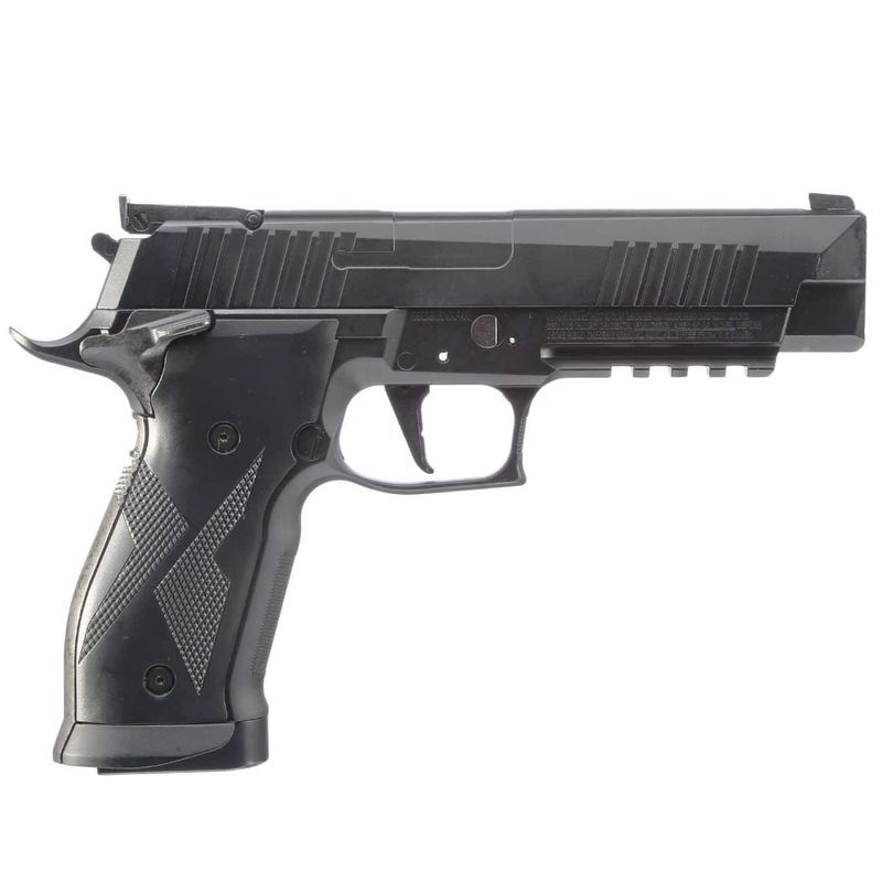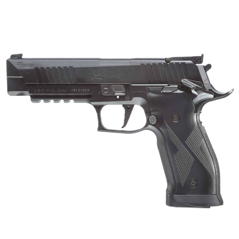 Detalhes da pistola Sig Sauer X-Five CO2: A pistola Sig Sauer P226 X-Five oferece uma velocidade média de 380fps (115m/s) com chumbinhos 4,5mm (.177) de 0,4g de peso.