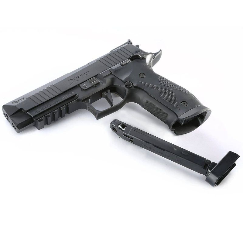 Outros recursos notáveis desta pistola de CO2 incluem a segurança bilateral, miras ajustáveis e a trilho Picatinny de 22mm localizado sob o cano (com 4,5cm de comprimento). Projetada para destros e canhotos, a Sig Sauer X-Five é uma escolha recomendada para entusiastas de tiro recreativo em busca de uma arma de alta qualidade que ofereça uma experiência de tiro realista. Além disso, seu design detalhado faz dela uma escolha valiosa para colecionadores.