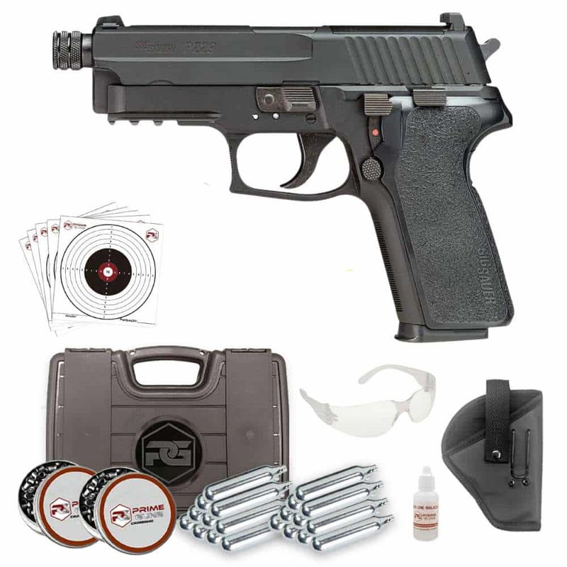 Muito similar às demais pistolas de chumbinho 4,5mm CO2, a Sig P229 Airgun possui uma energia média de 3,4 Joules, com cano raiado e ótima precisão
