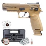 A Pistola de Chumbinho Sig Sauer P320 M17 TAN Co2 4,5mm Kit dispara no modo Semi Automática com velocidade de 300fps - 91m/s e energia de 2,5 Joules Ver mais