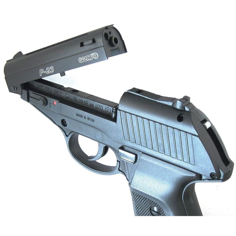 Perfeita para o tiro esportivo, a Gamo produziu a P23 Combat como uma das primeiras pistolas de co2 com esfera de aço da linha moderna. Possui seu carregamento não muito comum hoje em dia, mas muito inovador na época.