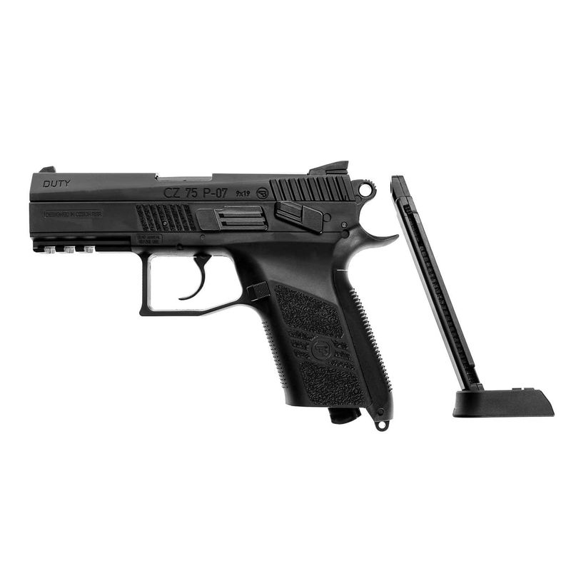 Uma réplica detalhada da CZ 75 P-07 Duty, feita em polímero resistente com ferrolho de metal (Full Metal Slide). Desenvolvida pela dinamarquesa ASG, possui todas as marcações oficiais da CZ graças à licença oficial, tornando-a ideal tanto para atiradores quanto para colecionadores.