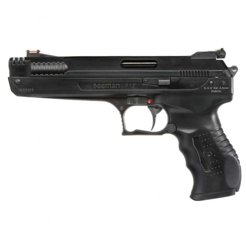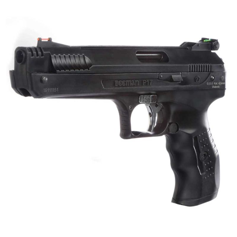 A Pistola de Pressão Beeman 2004 P17 dispara chumbinhos no calibre 4,5mm (.177) a uma velocidade de 415 fps (126 m/s) com ótima precisão.