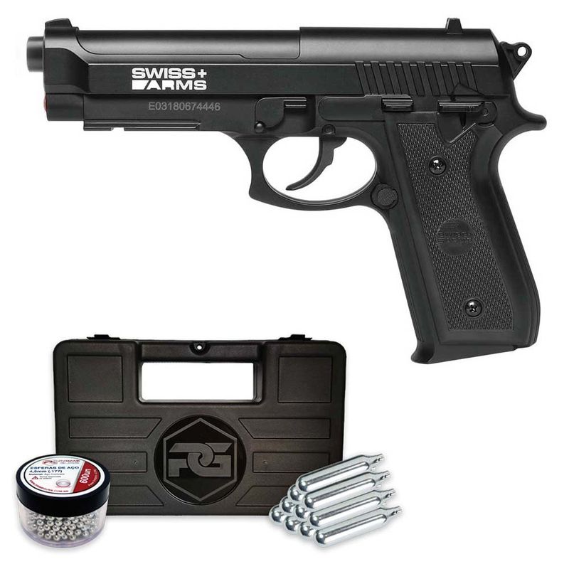 ArmasArmas de Chumbinho AirgunsPistola Co2Armas Curtas: Pistola e RevólverPistola de Pressão Co2 SA P92 Polímero ABS NBB 4,5mm Kit