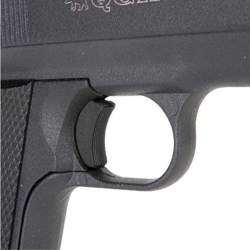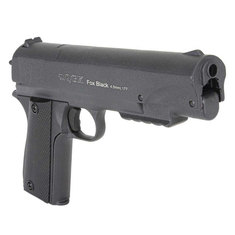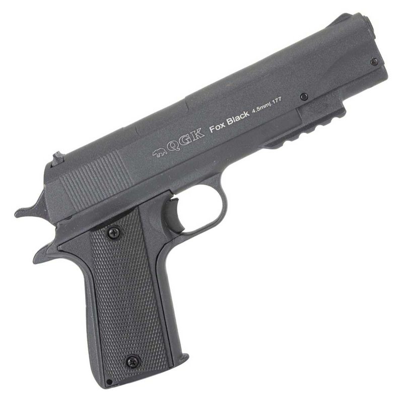 A Pistola 1911 FOX BK 4,5mm da QGK oferece uma velocidade de 320fps - 95m/s considerando chumbinhos padrão de 0,5g