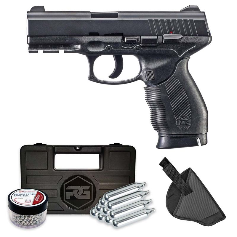 A Pistola de Pressão KWC 24/7 CO2 4,5mm ABS + Coldre dispara no modo Semi Automática com velocidade de 400fps - 122m/s e energia de 3,3 Joules Ver mais