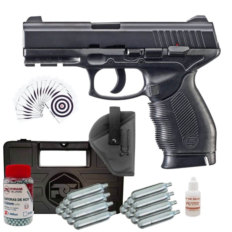 Dentre as inúmeras versões da pistola 24/7 CO2, tanto de airsoft quanto de airgun, a KWC produz esse modelo que oferece um ótimo custo-benefício, juntando força, precisão e desempenho, além de um preço bastante acessível.