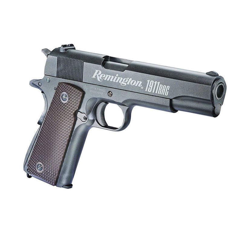 A Remington 1911 RAC é uma réplica de alto realismo da clássica 1911, fabricada pela Crosman sob licença oficial da Remington Arms. Operada por cápsulas de CO2 12g, dispara esferas de aço 4,5mm (.177) com ação blowback, simulando o recuo real da arma de fogo.