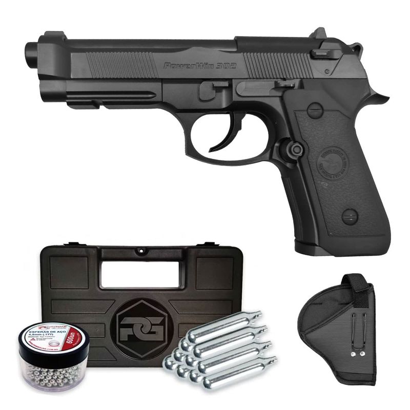 + Maleta de Transporte + 10 Co2 12g + 600 Esferas de Aço + Coldre Universal + Alvos + Óleo de Silicone