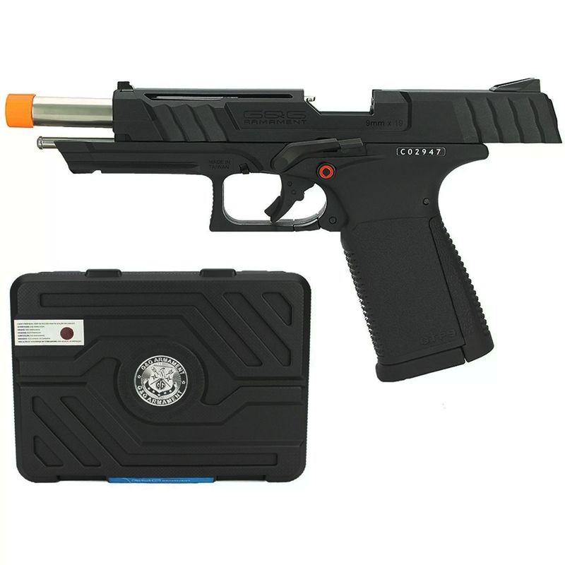 A G&G GTP9 é fabricada com corpo em polímero de alta resistência e ferrolho em metal, oferecendo 800g de peso para maior realismo e conforto.
