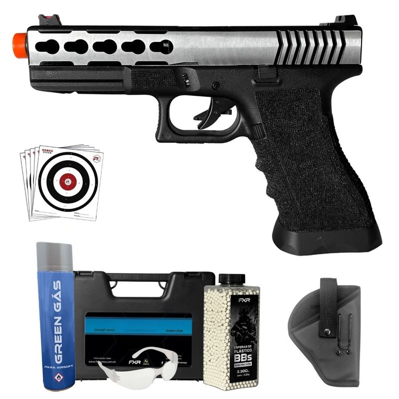 + 1 pote de esferas .20g + 1 Green Gás + Alvos + Óculos de Segurança + Coldre Universal