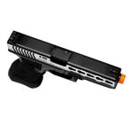 A Double Bell 17-74L é uma pistola airsoft de alto nível, desenvolvida para jogadores e entusiastas que buscam realismo, robustez e desempenho confiável. Inspirada na clássica linha Glock, esta versão traz slide keymod prateado, que além de reduzir peso, entrega um visual esportivo exclusivo.