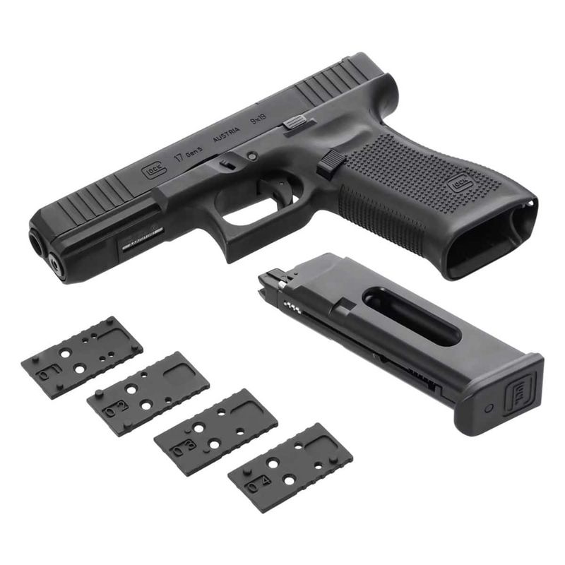1x Pistola Glock 17 Gen5 MOS CO2 4,5mm 4x Placas adaptadoras MOS (Docter, Trijicon, C-More, Leupold) 1x Ferramenta para montagem 1x Manual de instruções