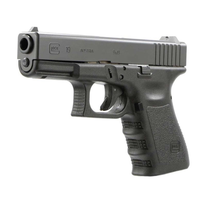 A Glock G19 é a mais clássica da marca, oferecendo um comprimento de 18,5cm, sendo que o comprimento do cano é de 102mm, oferecendo uma ótima precisão e agrupamento.