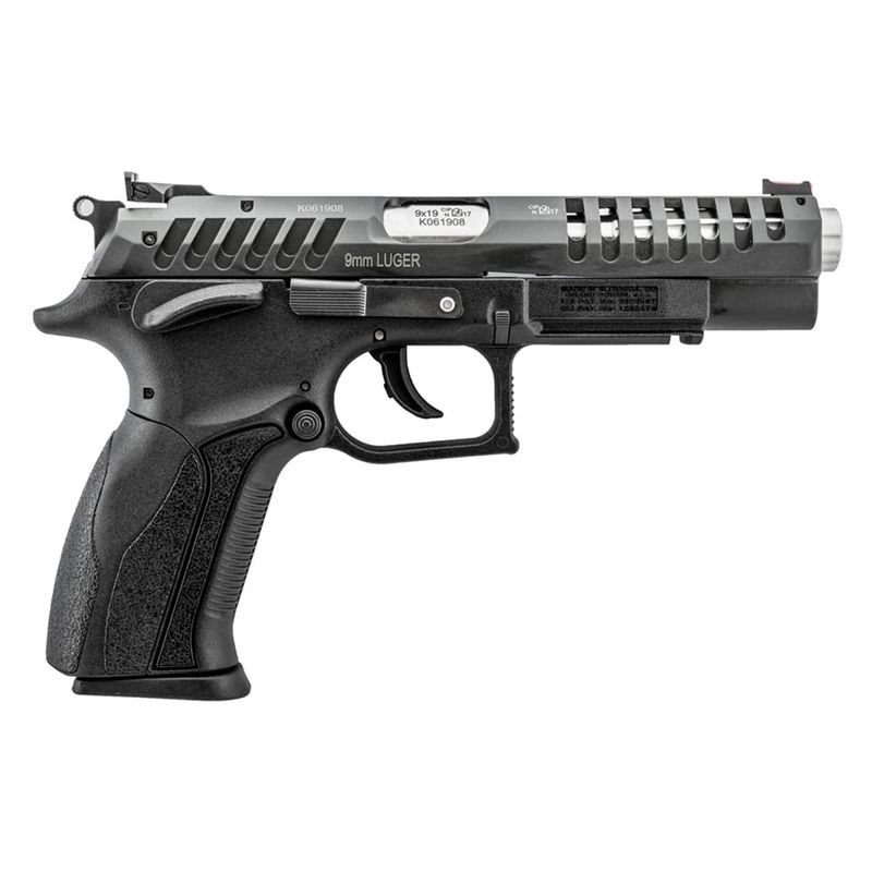 Fabricada com ferrolho em aço e frame em polímero de alta resistência, esta pistola vem com dois carregadores de 15 tiros, kit de limpeza e case rígido, pronta para uso competitivo.