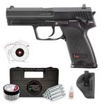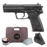 A pistola airgun HK USP Co2 4,5mm NBB é ideal para prática de tiro ao alvo em ambientes fechados ou ao ar livre, bem como para treinamento de tiro e prática de tiro esportivo. Ela é destinada para uso recreativo e não é uma arma de fogo real.