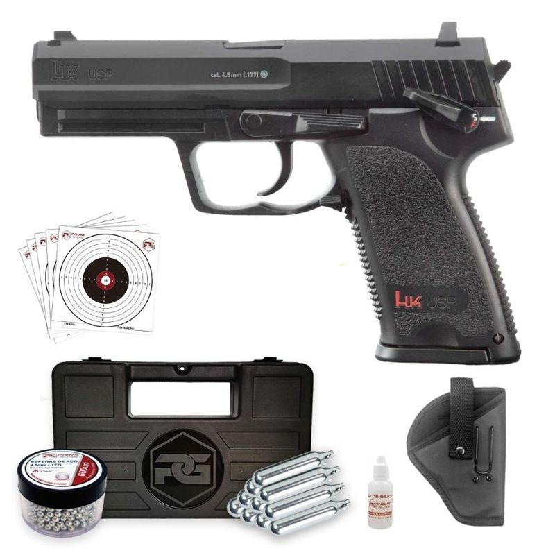 Aqui está uma descrição completa da pistola airgun HK USP Co2 4,5mm NBB: