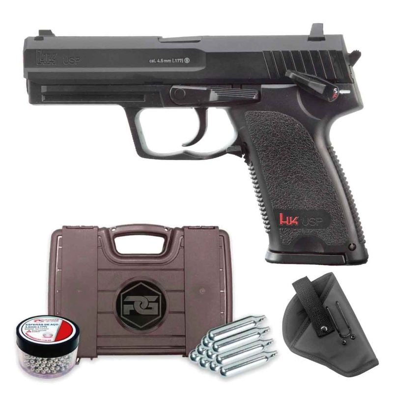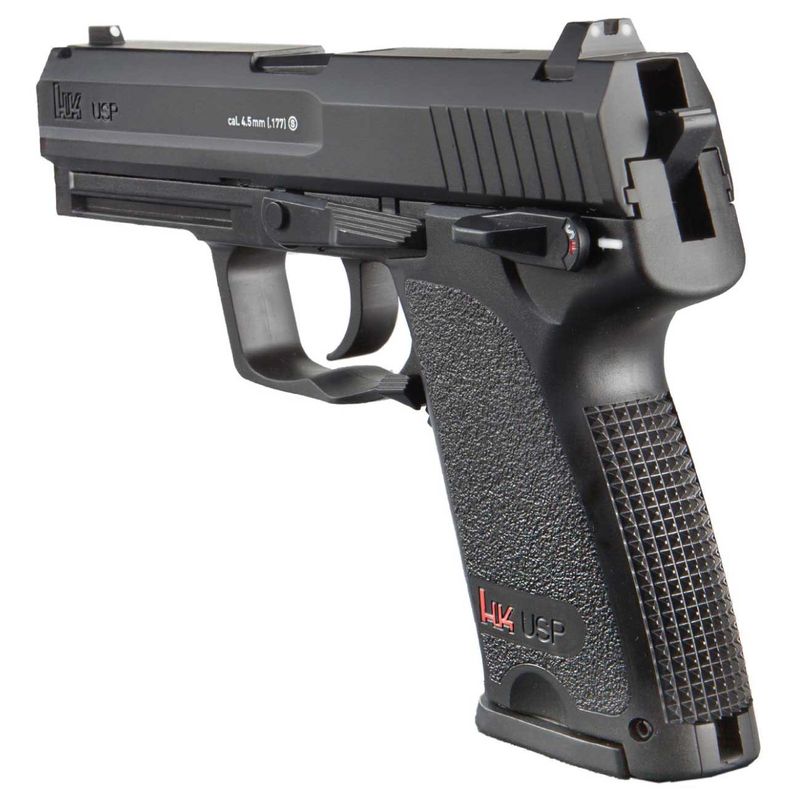 A pistola airgun HK USP Co2 4,5mm NBB da Umarex é uma arma de pressão que se assemelha à pistola Heckler & Koch USP (Universal Self-loading Pistol) real, uma pistola semiautomática popularmente utilizada por forças militares e de aplicação da lei em todo o mundo. A versão airgun é alimentada por cartuchos de CO2 e dispara esferas de aço calibre 4,5mm.