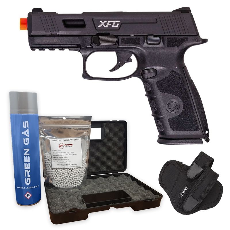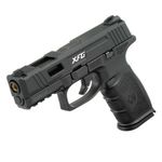 Com 782g, a pistola XFG Black combina slide metálico e corpo em polímero, com excelente acabamento.