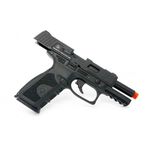 Seu visual tático lembra pistolas consagradas como a Smith & Wesson M&P e modelos Glock customizados. O acabamento é de alta qualidade, com corpo em polímero resistente e ferrolho (slide) em metal, o que garante excelente pegada e realismo.