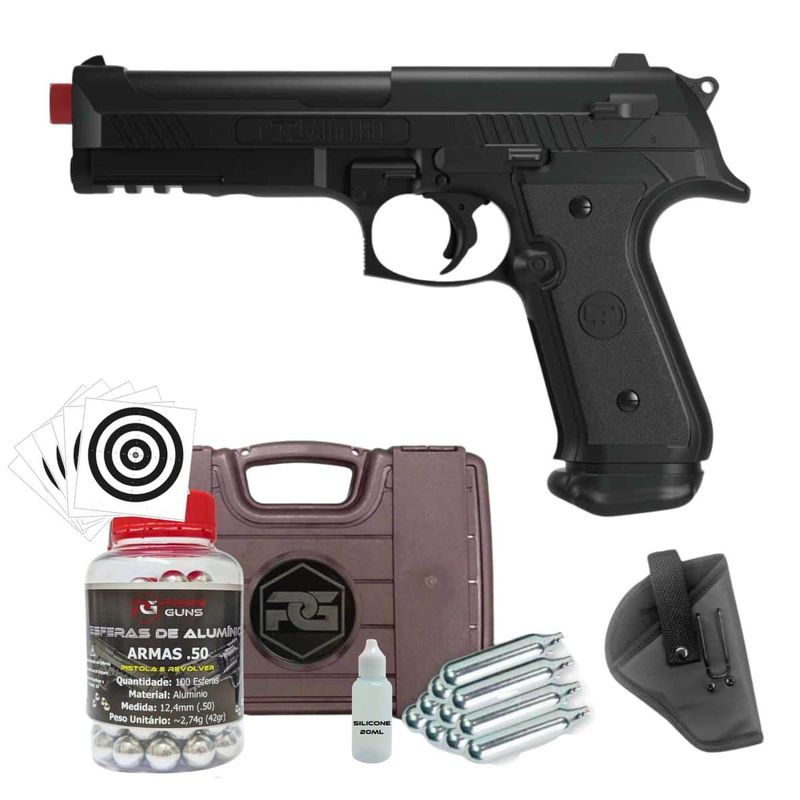 + Maleta de Transporte + 100 Esferas de Alumínio .50 + 10 Cilindros de Co2 12g + Coldre + Alvos + Óleo Silicone
