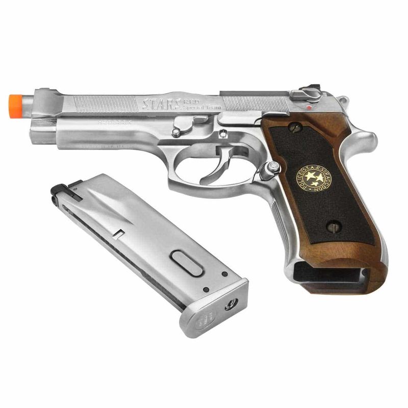 A Pistola M92 Samurai Edge Biohazard Cromada GBB 6mm dispara no modo Semi Automática com velocidade de 330fps - 101m/s e energia de 1 Joules Ver mais
