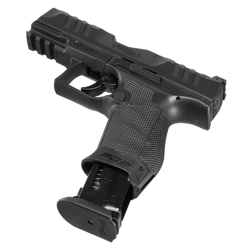 A pistola Walther PDP Compact 4" de paintball possui capacidade para 8 esferas calibre .43, ideal para realismo e desempenho em jogos e treinamentos.