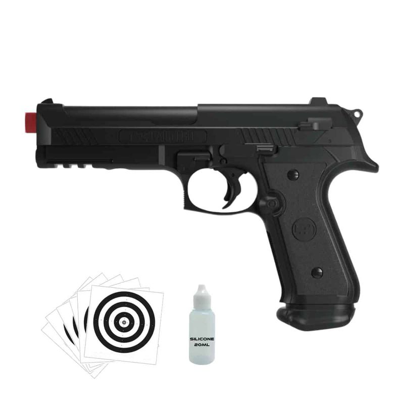 O modelo é feito de plástico de alta qualidade, com cano em metal. Possui trilho Picatinny de 22 mm sob o cano para montagem de acessórios opcionais.