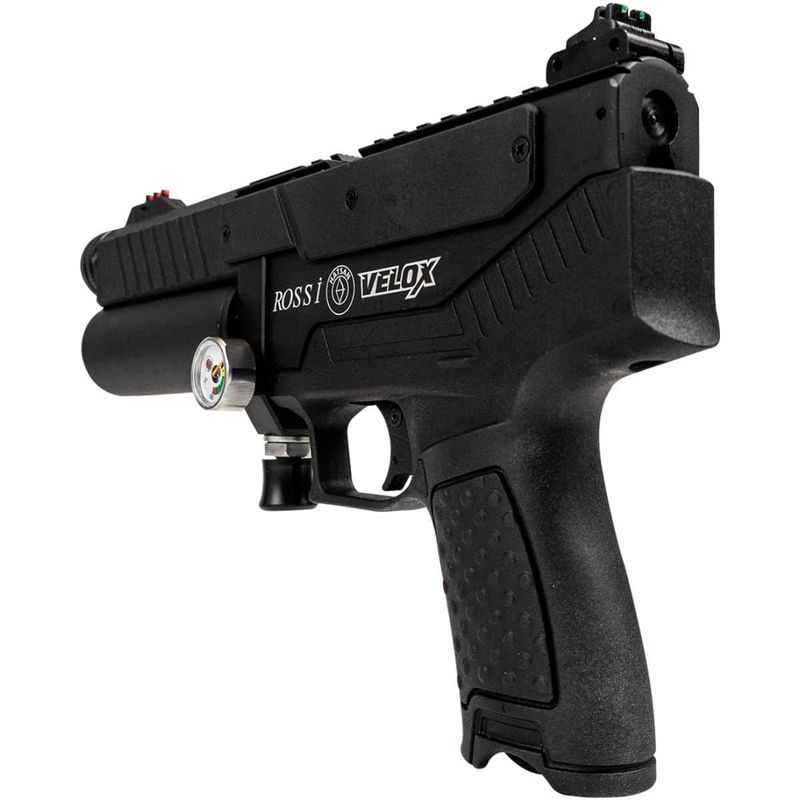 A Hatsan Velox é equipada com o poderoso sistema PCP (Pré-Carregamento Pneumático), o que lhe confere uma excelente autonomia de disparos e alta precisão. Com uma velocidade máxima de até 185 m/s (606 FPS) e uma energia de 17,1 Joules, essa pistola é ideal para atividades como tiro de precisão, impacto e recreação. Seu carregador tem capacidade para até 12 chumbinhos, o que permite uma boa sequência de tiros sem necessidade de recarga constante.