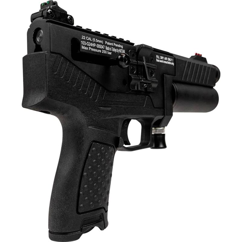 Fabricada em polímero e metal, a Pistola Hatsan Velox PCP possui um peso confortável e ótima empunhadura para tiros de alta precisão.