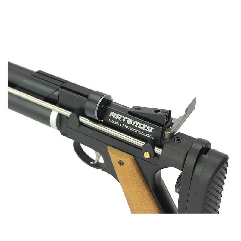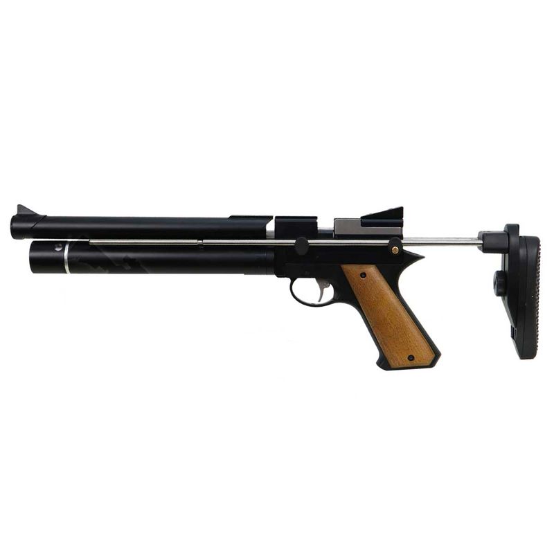 Esta é a nova pistola de ar PP750 PCP da Artemis. Esta pistola possui um estoque deslizante ajustável para permitir que o usuário carregue a arma como um rifle. Isso dispara um pouco abaixo do limite legal, por isso é definitivamente útil para tiro ao alvo e controle de pragas. O PP750 usa um carregador de 7 tiros e dispara cerca de 40 tiros de um cilindro de ar cheio. A ação da alavanca lateral e o gatilho ajustável tornam esta pistola fácil de usar e ótima para qualquer tipo de tiro.
