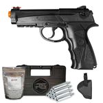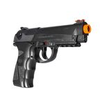 B92 Pistola tática da Wingun, cor preta com cano fixo movido a CO2. A arma é equipada com uma massa de mira e entalhe de mira em fibra óptica e muita força de disparo.