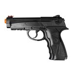 B92 Pistola tática da Wingun, cor preta com cano fixo movido a CO2. A arma é equipada com uma massa de mira e entalhe de mira em fibra óptica e muita força de disparo.