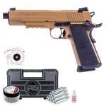 A pistola de CO2 Sig Sauer 1911 Emperor Scorpion 4.5mm Desert é uma reprodução fiel da arma de fogo, proporcionando uma experiência o mais próxima possível da original sem a necessidade de adquirir munição calibre 45 Auto. Com velocidades de até 300 fps, esta pistola é uma excelente forma de praticar para a versão de cano curto sem precisar ir até um estande de tiro, oferecendo diversão tanto para plinking quanto para prática de alvo.