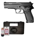 A Pistola Sig Sauer P226 Mola Spring 4,5mm + Maleta + Esferas dispara no modo Repetição com velocidade de 190fps - 58m/s e energia de 0,6 Joules Ver mais