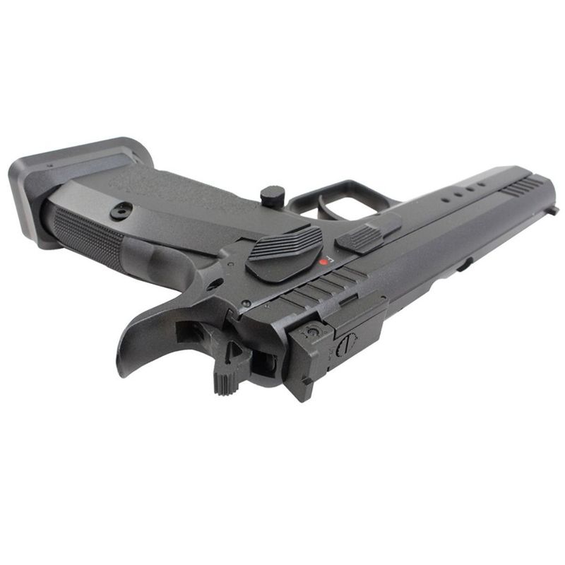 A Tanfoglio Custom, comercializada também como KWC 75 TAC — é uma pistola airgun CO2 4,5 mm projetada para oferecer o máximo de realismo e desempenho a praticantes de tiro esportivo e colecionadores. Construída na configuração semiautomática com ação blowback, a Tanfoglio Custom entrega uma sensação tátil e um ciclo de funcionamento muito próximos aos de uma pistola real, combinando acabamento metálico, peso equilibrado e resposta consistente a cada disparo. Para fins de busca e posicionamento, a designação “Tanfoglio Custom” foi priorizada por seu apelo junto a atletas de IPSC e entusiastas de réplicas de competição.