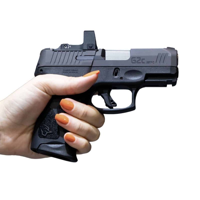 A Taurus G2C .38 TPC TAN é uma pistola leve, com apenas 610g (descarregada), construída com frame em polímero e ferrolho em metal com acabamento Cerakote®.