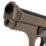 Com uma capacidade impressionante de 19 disparos em ação SA/DA e um cano de 4” (102mm), esta pistola é perfeita para usuários exigentes. Seu acabamento em Cerakote® Flat Dark Earth (FDE) não só confere uma estética sofisticada, como também alta resistência ao desgaste e corrosão.