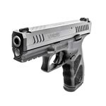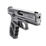 A pistola também possui uma empunhadura texturizada para uma aderência firme e segura, mesmo em condições úmidas ou com as mãos suadas.