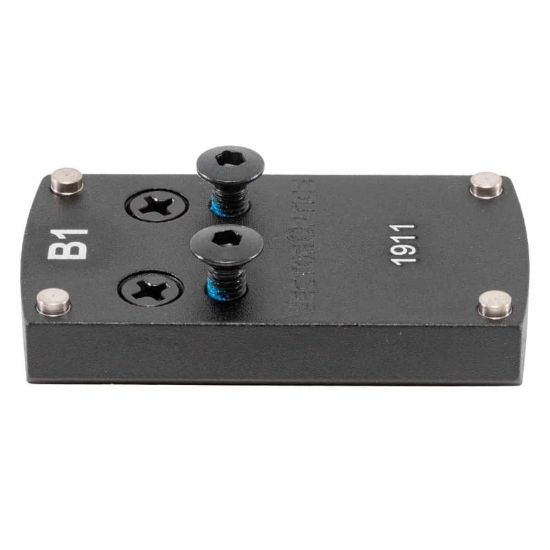 Está placa de mount MOS produzido em liga de alumínio de alta qualidade com acabamento preto fosco durável, com esse adaptador pode fixar um Red Dot na sua arma de fogo modelo1911, sua colocação é feita por parafusos acoplados ao corpo do mount facilitando sua montagem.