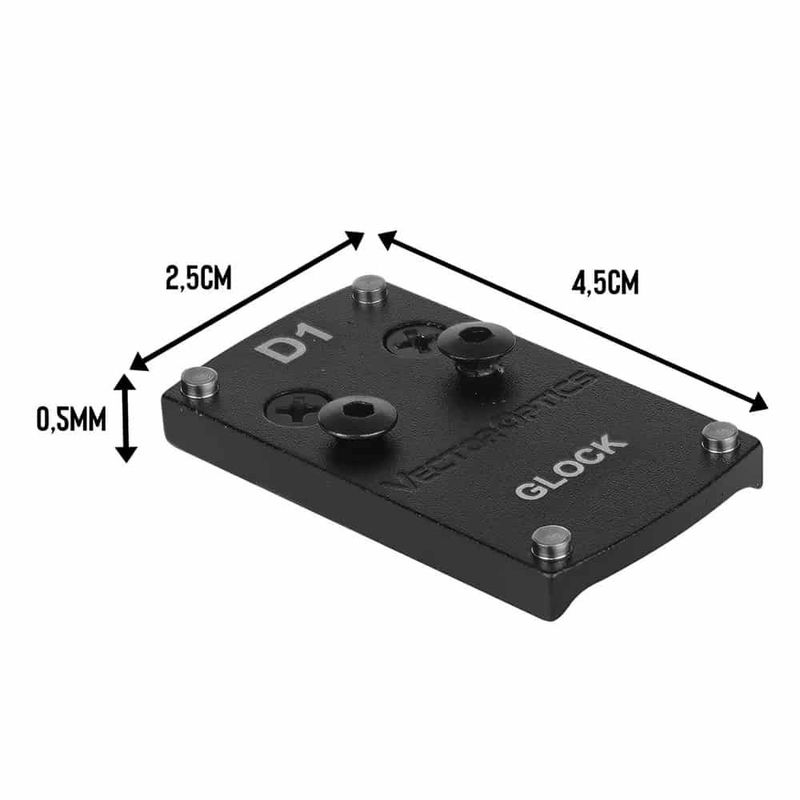 Placa de Mount Vector Optics, Conhecido também como suporte de fixação para red dot é compatível com pistolas de fogo modelo Glock.