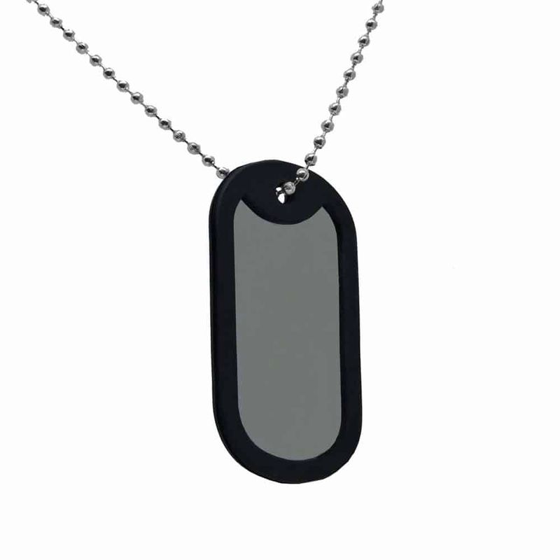 A corrente possui uma chapa de metal com borracha em volta e um projétil. O uso principal das plaquetas é para a identificação, eles têm informações sobre o indivíduo escritas neles, incluindo identificação e informações médicas básicas essenciais.
