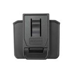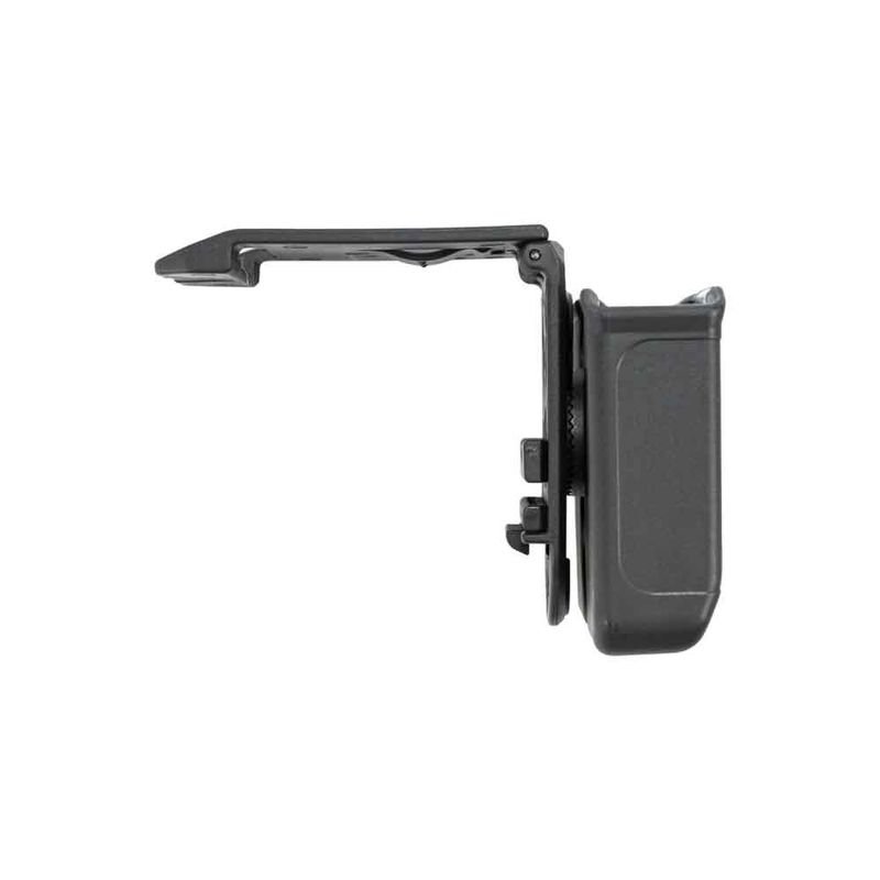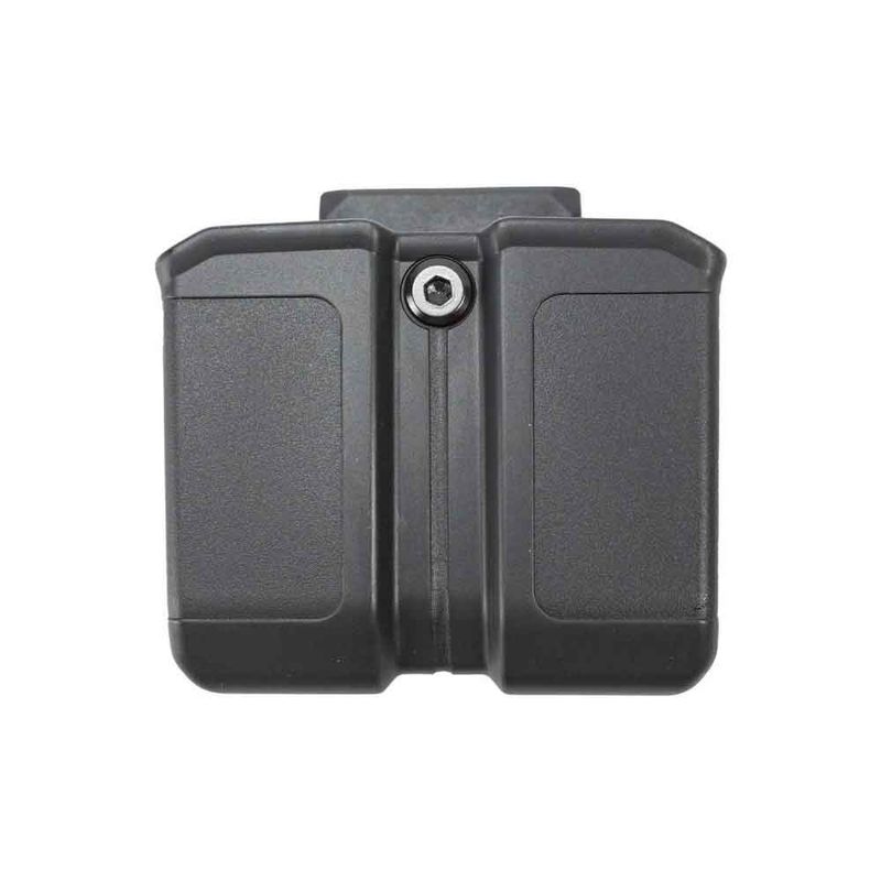 É confeccionado em polímero de alta resistência, possui ajuste de largura e espessura. Porta carregador bilifar compatível com magazines de armas de calibre 9mm e 40S&W.