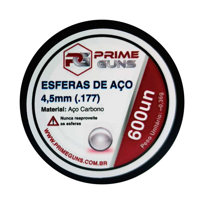 As Esferas de Aço Prime Guns 4,5mm (.177) 600un são compatíveis com armas de pressão para Tiro ao alvo e Tiro esportivo afim de proporcionar maior precisão e força em Pistolas de Co2 4,5mm (.177), Rifles e carabinas 4,5mm (.177) e Carabinas BBs 4,5mm (.177).