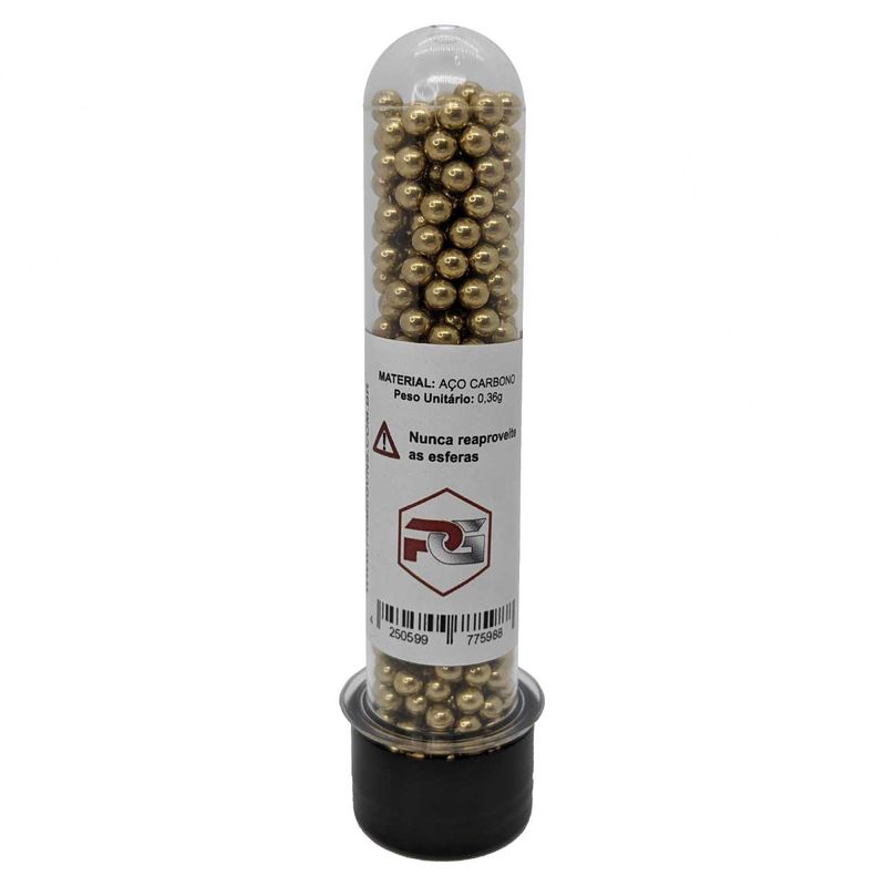 Fabricada pela própria Prime Guns, as esferas de aço são produzidas em Aço Carbono com banho químico de composto com cobre para oferecer maior resistência contra oxidação.