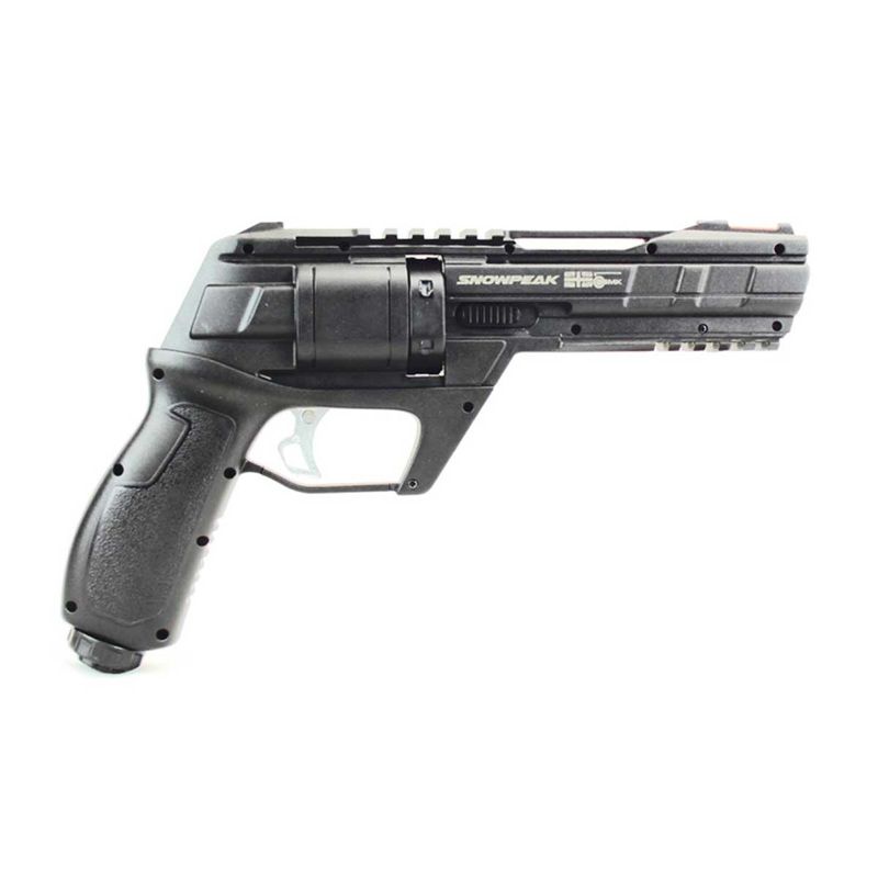 Calibre: 0,50 Munição: munição de borracha, esferas de plástico, bolas de tinta, munição de pimenta e esferas de alumínio calibre .50 Sistema: cápsula de CO2 de 12g Capacidade: Tambor de 6 tiros Energia: máx. 12 joules Velocidade de disparo: 134 m/s Disparo: Semi Automático Ação Simples e Dupla 2 trilhos picatinny Comprimento: 22,5 cm Peso: cerca de 730g Cor= preta Marca: Artemis/Snowpeak